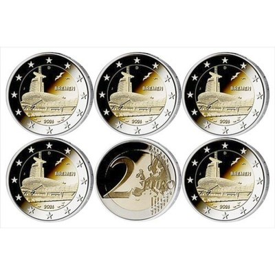 Γερμανία 2 Ευρώ Αναμνηστικό 2026 " Βρέμη" X 5 Νομισματοκοπεία (A,F,J,G,D) Ακυκλοφόρητα |