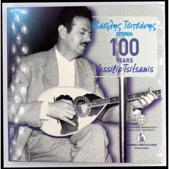 Ελλάδα 5 Ευρώ 2015 " 100 Χρόνια από τη γέννηση του Βασίλη Τσιτσάνη " Επιμελημένη κοπή σε Τρίπτυχο