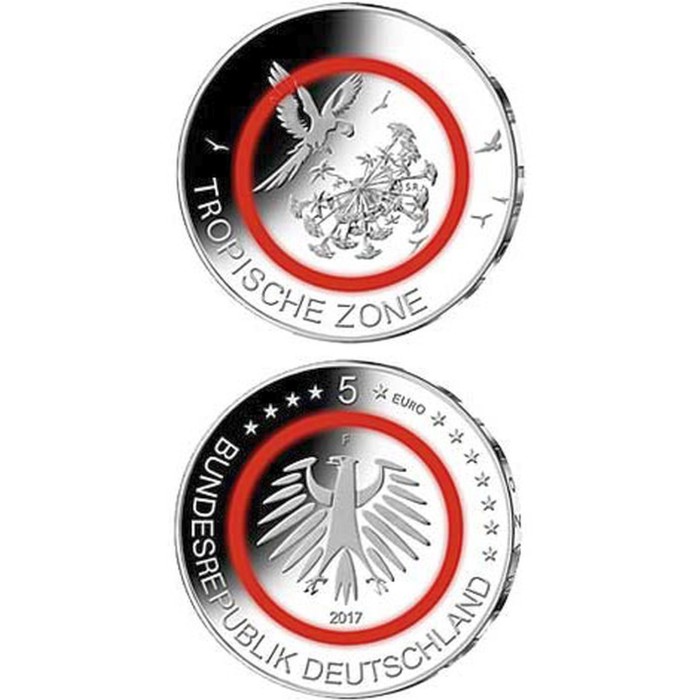 Γερμανία 5 Ευρώ 2017 "Τροπική ζώνη" Κόκκινο πολυμερές δαχτυλίδι Ακυκλοφόρητο