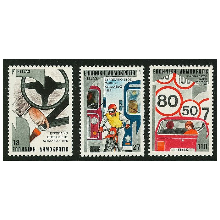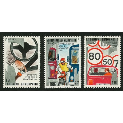 Ελλάδα 1986 "Ευρωπαϊκό Έτος Οδικής Ασφάλειας" Πλήρες σετ Ασφράγιστο Λουξ (**) Βλαστός 1687-1689