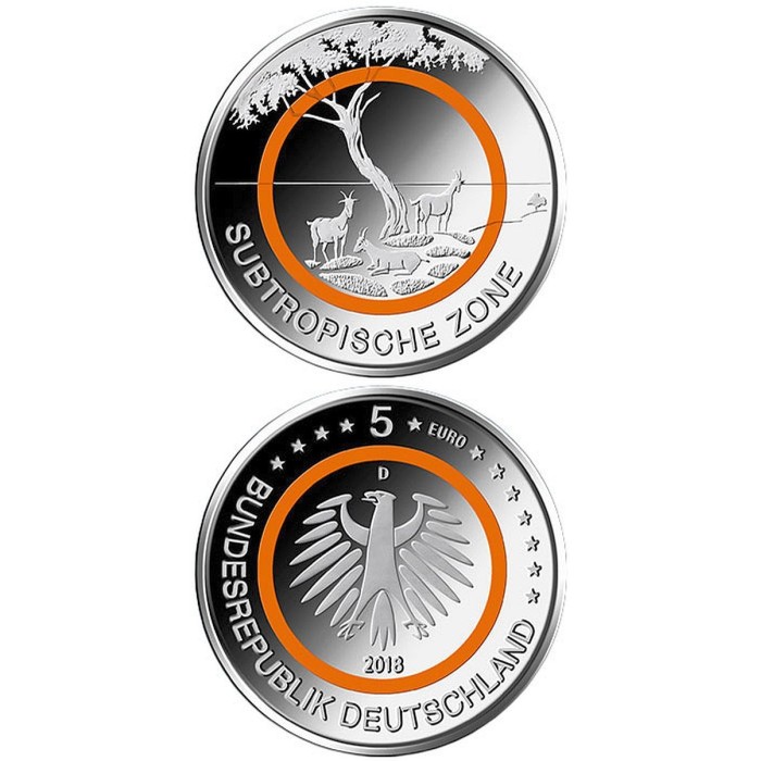 Germany 5 Euro 2018 "Subtropische Zone" orange polymer ring UNC