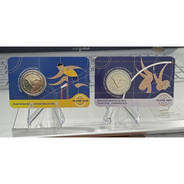 Finland 2 Euro 2025 commemorative "100 Years Finland-Sweden Athletics International" BU in Coincards (set of 2 cards) |