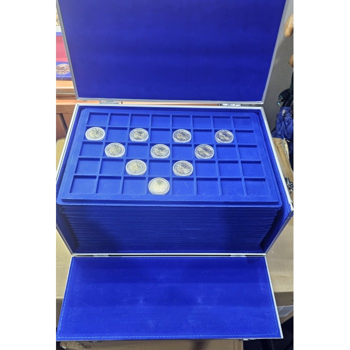 GRANDE Coin Aluminium case with 17 blue velvet trays for 680 2 euro coins