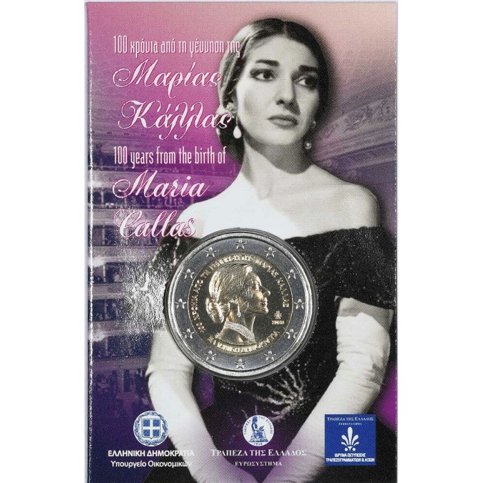 Geece 2 Euro 2023 Commemorative " 100 Years since the birth of Maria Callas" BU in Coincard