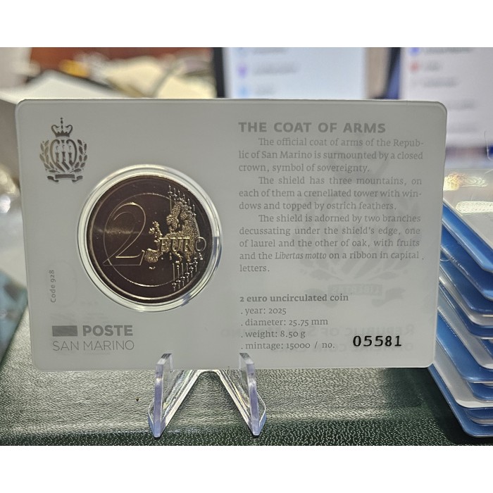 San Marino 2 euro 2025 "Coat of Arms" Official coincard |